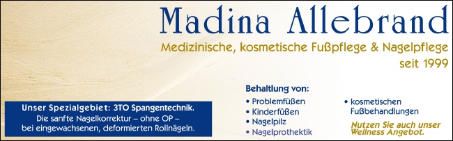 (c) 2021 med. Fußpflege & Nagelpflege Madina Allebrand • Webkonzept www.imdialog-marketing.de |